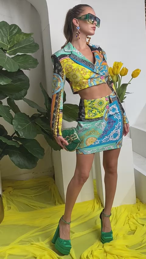Set Mini Falda y Blazer Crop garigoleado Multicolor