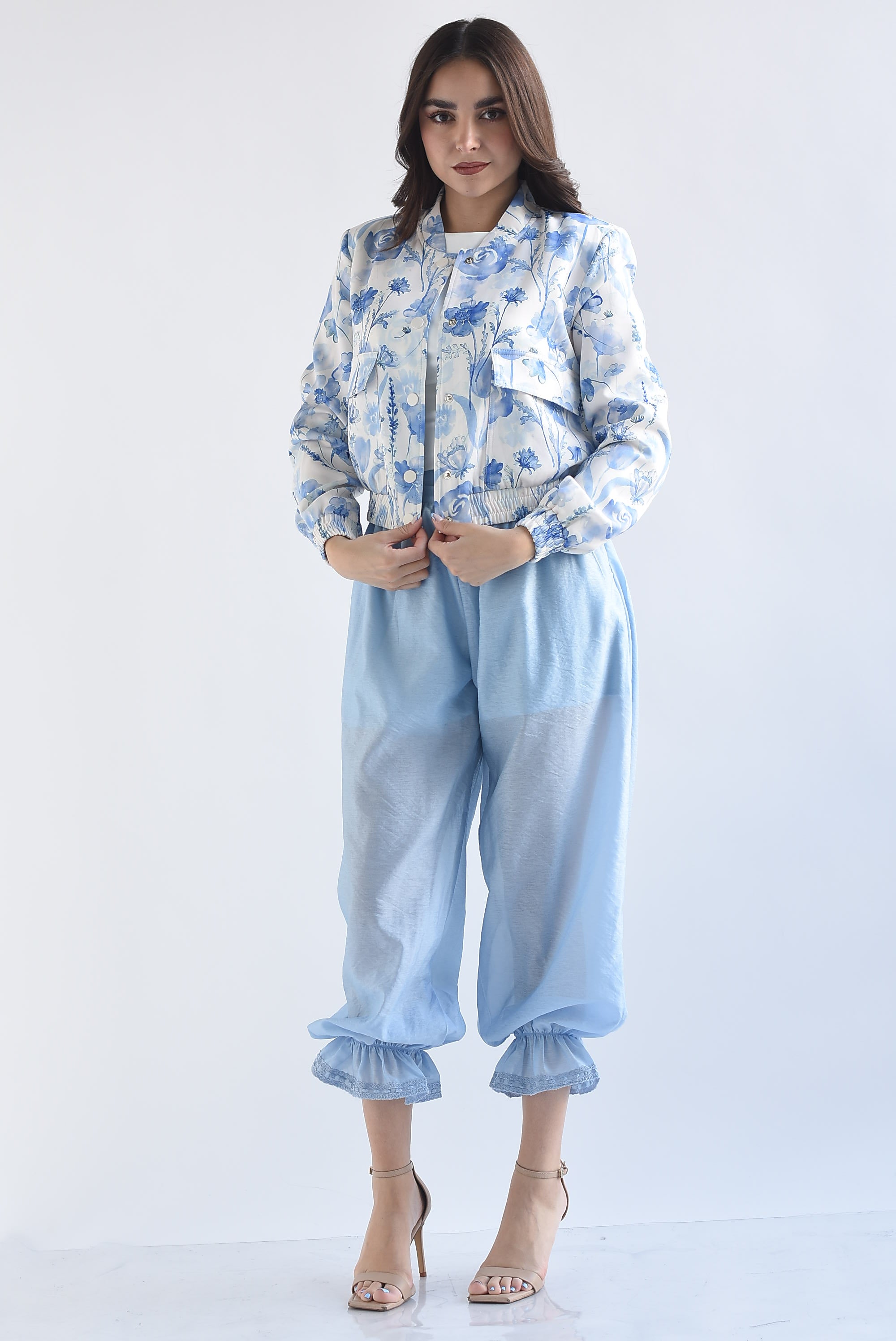 Agotado Nuevo Set Pantalón globo y Blusa peplum gasaSet Pantalón globo y Blusa peplum gasa