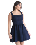 Blusa encaje manga larga cuello perkins Azul Marino - M